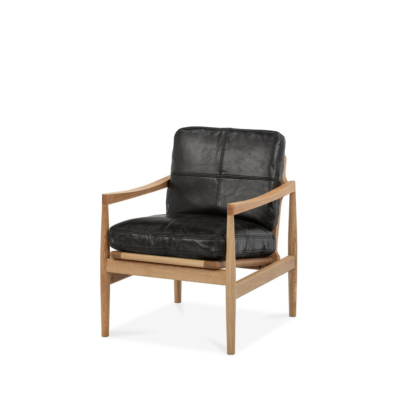 The Den Armchair is a classic simple armchair made from solid oak and full aniline leather.