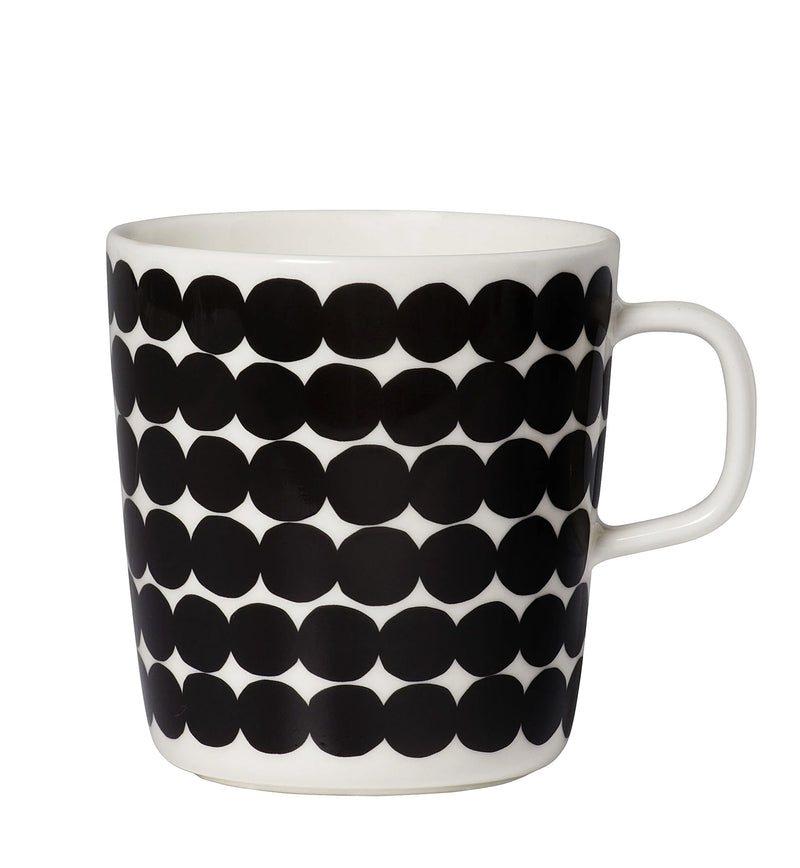 In the Räsymatto pattern on this Oiva mug you can see a rag rug placed on the floor of a garden cottage, with rays of sun dancing on its figures.