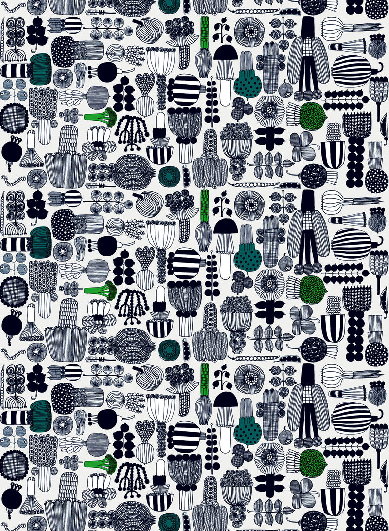 The fruits of the gardener´s labours look lovely on Puutarhurin parhaat, a Maija Louekari design. The pattern brings the scrumptious shapes and flavours of the harvest to the kitchen year round.