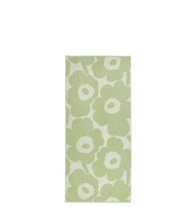 The embossed Unikko pattern bath towel is made of organic cotton terry. The reverse side of the towel is even.