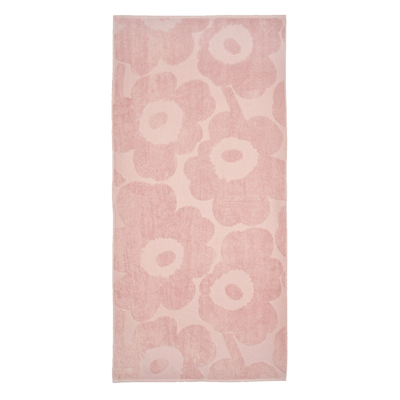 The embossed Unikko pattern bath towel is made of organic cotton terry. The reverse side of the towel is even.
