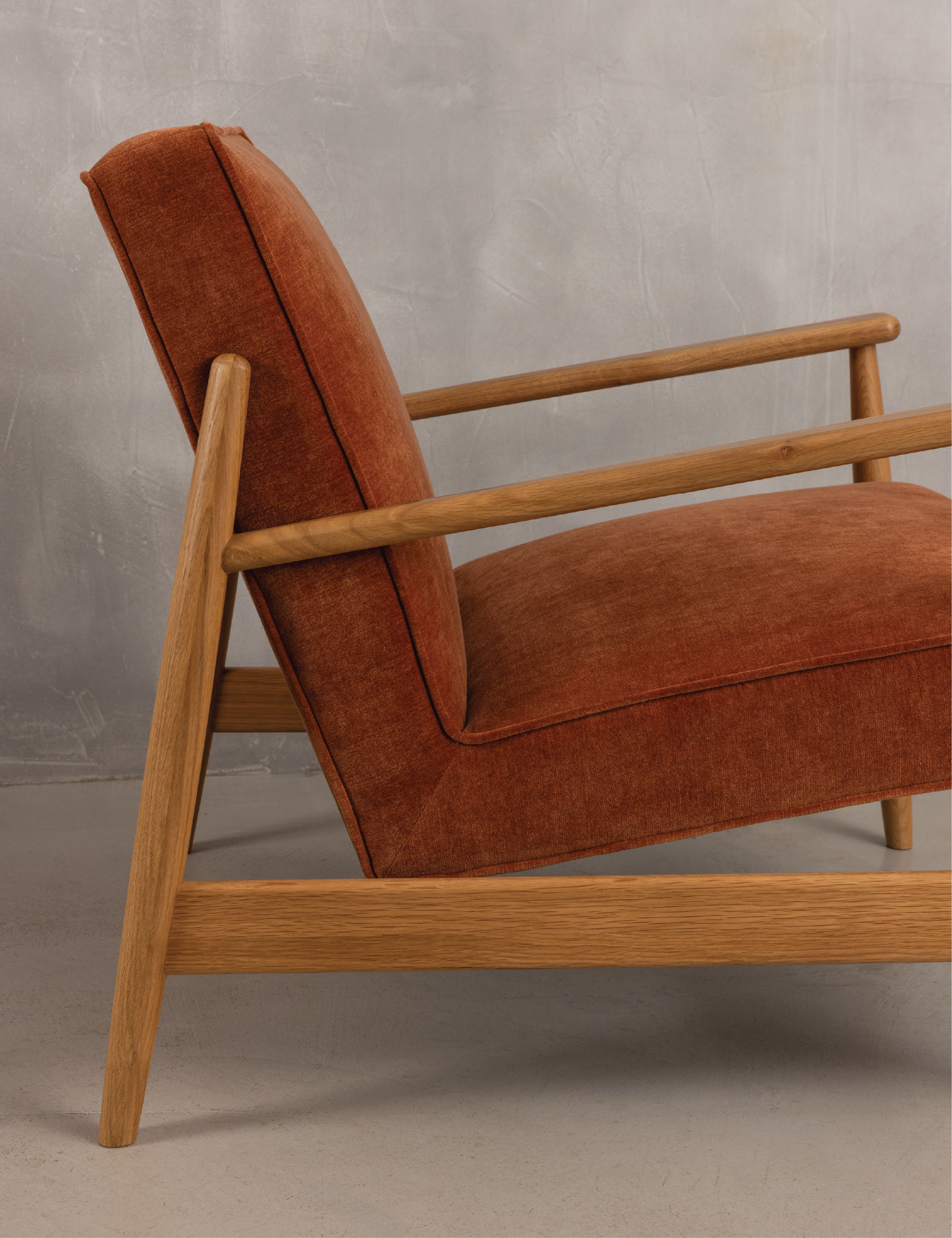 Bold in silhouette yet inviting in comfort, the Nord Lounge Chair is crafted from solid elm and upholstered in rich, authentic leather. Its generous proportions and clean Mid-Century Modern lines create an interior moment that's both sculptural and welcoming.