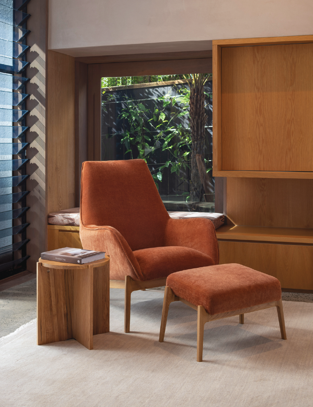 The Nord Ottoman is a classic Mid-Century Modern design, crafted from solid elm and upholstered in supple, authentic leather.