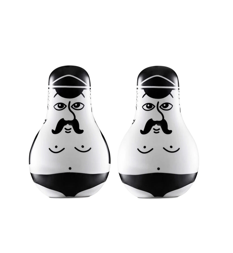 The pair of salt & pepper shakers - which has been nicknamed Gordon & Andreas - stands out as having personality, humour and character. The design plays on the double meaning of the Danish word ‘bøsse’ (which means both ‘shaker’ and ‘gay’), and the two friends come with and without a painted leather vest, signifying either the salt or the pepper shaker.