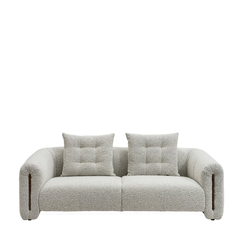 Crafted with meticulous attention to detail, the Kurva Sofa upholstered in bouclé seamlessly blends form and function. Its three-seat design ensures ample space for you and your loved ones to unwind together. The inviting curves of the sofa not only create a visually appealing aesthetic but also contribute to a feeling of serenity and comfort.