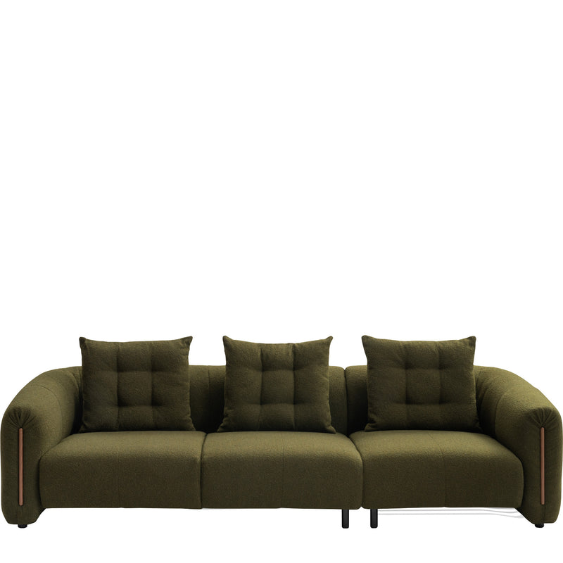 Crafted with meticulous attention to detail, the Kurva Sofa upholstered in bouclé seamlessly blends form and function. Its four-seat design ensures ample space for you and your loved ones to unwind together. The inviting curves of the sofa not only create a visually appealing aesthetic but also contribute to a feeling of serenity and comfort.