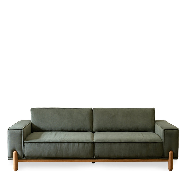 Reflecting the beauty of the northern lights, Aurora in Swedish is "Norrsken". Constructed in high quality materials including heavy details of solid oak, luxury corduroy fabric and high-density foam, this is indeed a solid piece of furniture. The Norrsken Sofa brings warmth and texture to any space. Perfect for laid-back lounging, it captures the beauty of Scandinavian design and the coziness of home.