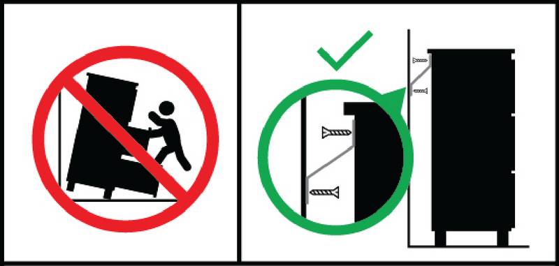 - Never allow children to stand, climb or hang on drawers, doors, or shelves.